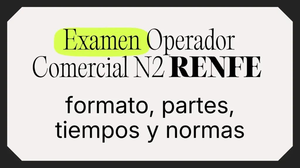 El examen de Operador Comercial N2 en Renfe es una de las fases más importantes del proceso selectivo, ya que determina quién puede continuar y optar finalmente a una de las plazas ofertadas.